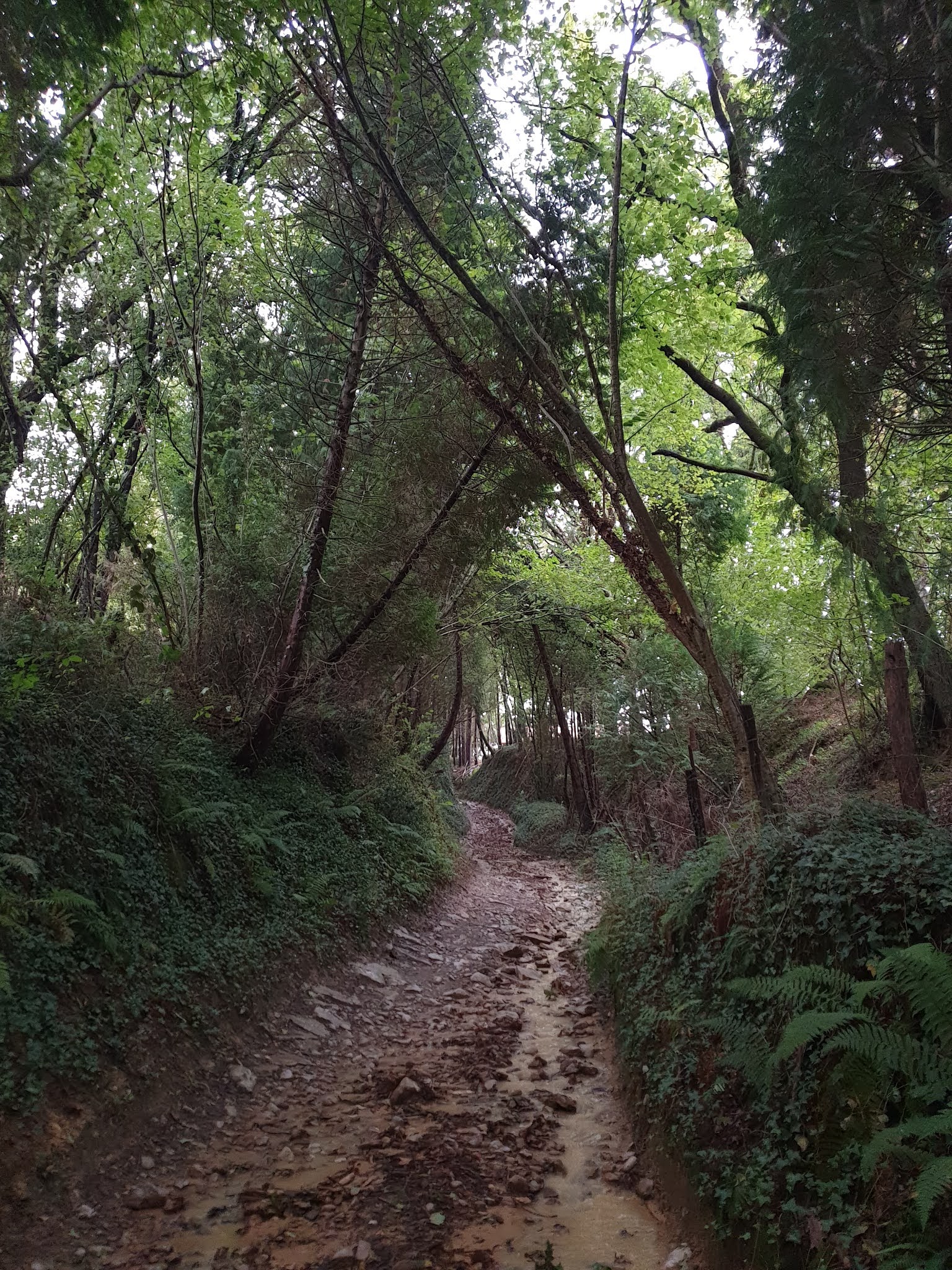 En breve, tras unas escaleras, el camino se divide en un par de opciones: una para ‘alpinistas’, más espectacular que va por el alto y sigue el GR-11 (enlaza a unos 3 km con el itinerario oficial) y la de los peregrinos de toda la vida. Yo decido ir por la primera. En este tramo se pueden algunas pottokas, un poni originario del País Vasco.